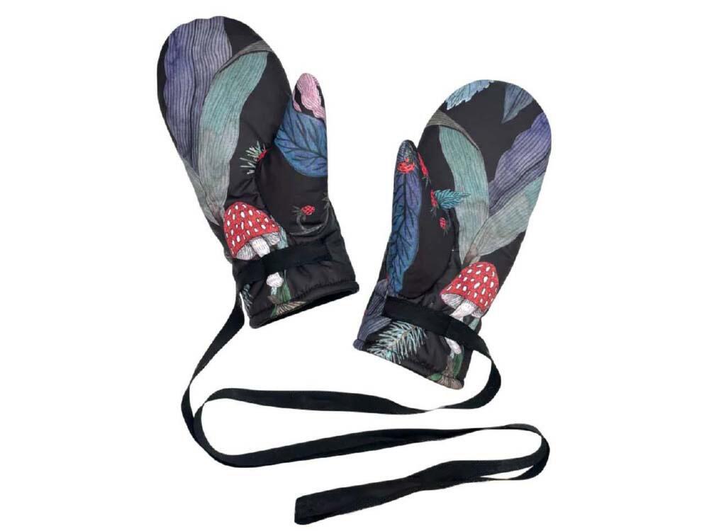 Верхняя ткань выполнена из непромокаемой курточной ткани, внутри флисовый подклад и утеплитель - холлофайбер. Температурный режим до -20 градусов. Варежки на ленте, "как в детстве".