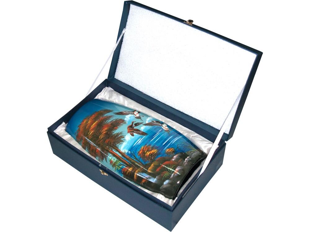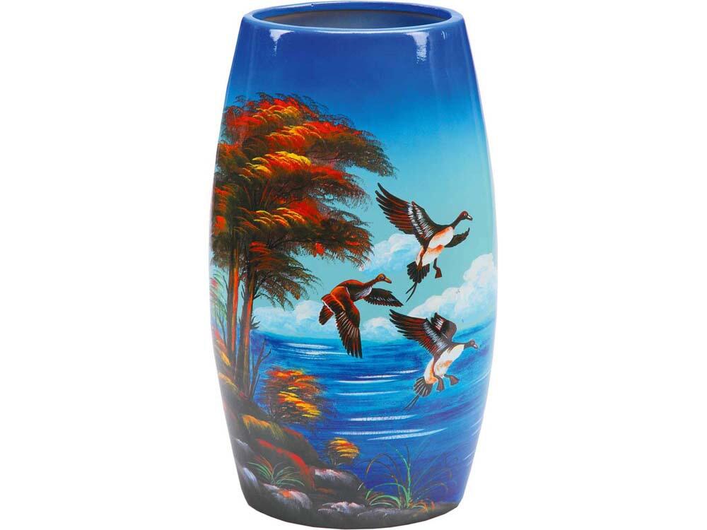 Отличная ваза поможет внести яркое пятно в интерьер любого помещения. Ваза «Утиная охота» с изображением диких уток выполнена из качественной керамики и раскрашена сочными цветами. Ваза станет превосходным подарком для заядлых охотников.