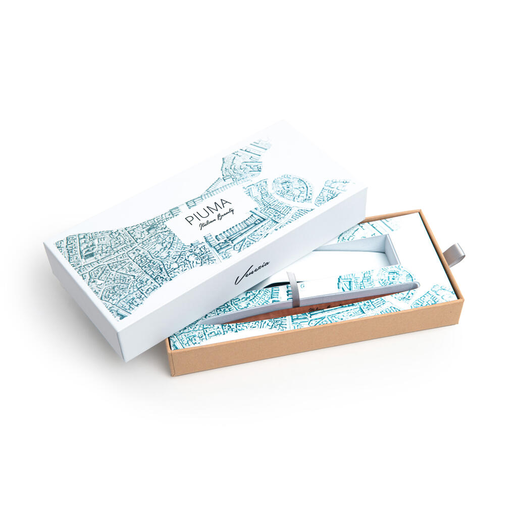 Вечная ручка Pininfarina Piuma Венеция из лимитированной коллекции дизайнеров Pininfarina в сотрудничестве с Francesco Corni Foundation, посвященной красоте Италии и представленной 8 городами. Франческо Корни - выдающийся дизайнер из Модены, посвятивший свою жизнь популяризации истории и архитектуры. Используя трехмерное перспективное видение, он изучает наиболее значимые здания каждого города, выбирает наилучшую точку обзора, чтобы подчеркнуть их особенности, и прорисовывает детали в древней технике калиграфии. Дополняет видение мастера умелое использование цветов, по одному для каждого города. Для Венеции дизайнер выбрал центром композиции вид сверху на Arsenale di Venezia и сине-зеленый морской цвет, в результате подарочная коробка c ручкой Pininfarina PIUMA становится произведением искусства. PIUMA - ручка динамической формы в виде гусиного пера. Дизайнеры вдохновлялись Кодексом о полете птиц мастера Леонардо да Винчи, целью которого было понять тайну полета и который хранится сейчас в Королевской библиотеке Турина. Piuma находится в постоянном равновесии со своим центром тяжести благодаря белому стальному пьедесталу. Вечная ручка имеет необычный пишущий узел в виде наконечника Ethergraf®, изготовленного из сплава металлов по запатентованной технологии. Он не содержит свинец и алюминий, производится вручную итальянскими мастерами и практически не расходуется за десятилетия использования. При соприкосновении с поверхностью бумаги, происходит химическая реакция и наконечник оставляет серебристый след, который напоминает цвет графитового карандаша, но обладает большей стойкостью. Идеально пишет на каменной бумаге. На ручке стильный логотип Italian Beauty, она полностью сделана из дерева груши. Набор упакован в белую подарочную коробку.