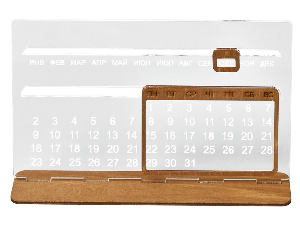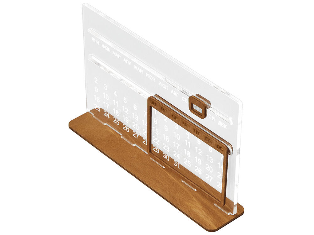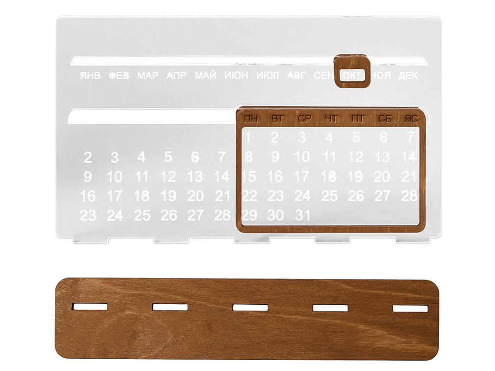 Элегантный вечный календарь не требует замены каждый год. Простая система смены дат позволяет быстро настроить текущий день, месяц и число, оставаясь всегда актуальным. Минималистичный дизайн с тёплой текстурой дерева делает календарь стильным элементом рабочего стола, книжной полки или оригинальным подарком, который будет радовать долгие годы.