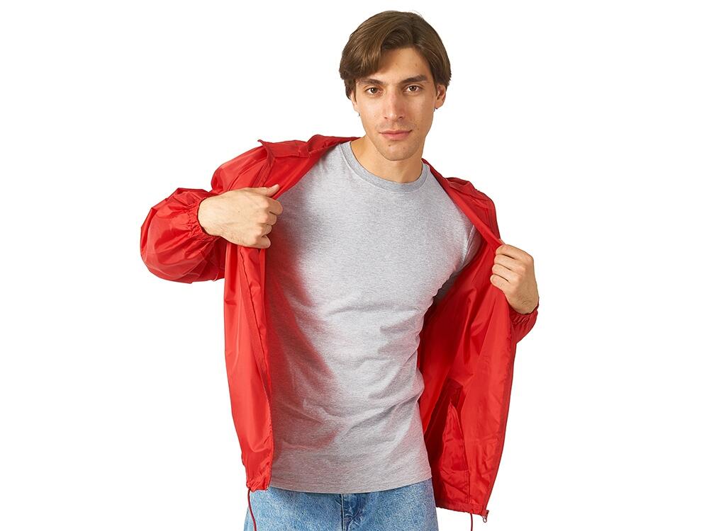 Мужская ветровка с капюшоном без подкладки застегивается на молнию, манжеты на резинке, нижняя часть регулируется с помощью шнурка. Ветровка Promo очень легкая, убирается в удобный чехол и почти не занимает места – она идеальна в качестве сувенира на мероприятиях, проходящих на улице в теплое время года. Доступно четыре расцветки.