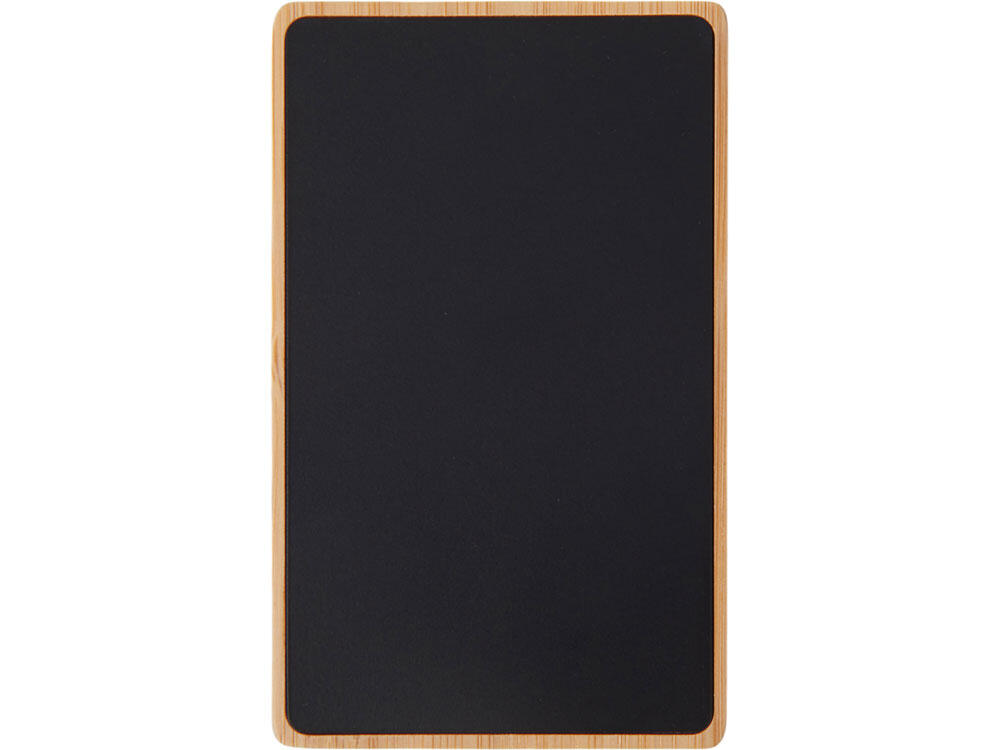 Компактный и стильный внешний аккумулятор ёмкостью 5 000 мАч — идеальный спутник для повседневных дел и коротких поездок. Его корпус сочетает в себе натуральный бамбук и переработанный ABS-пластик, что делает устройство не только более экологичным, но и визуально премиальным. Особый шарм ему придаёт встроенная панель с белой подсветкой с возможностью нанесения логотипа — ваш бренд или инициалы мягко засветятся в темноте, привлекая внимание и подчеркивая индивидуальность. Это не просто power bank — это экосознательный аксессуар, который заряжает ваши гаджеты и вдохновляет окружающих.