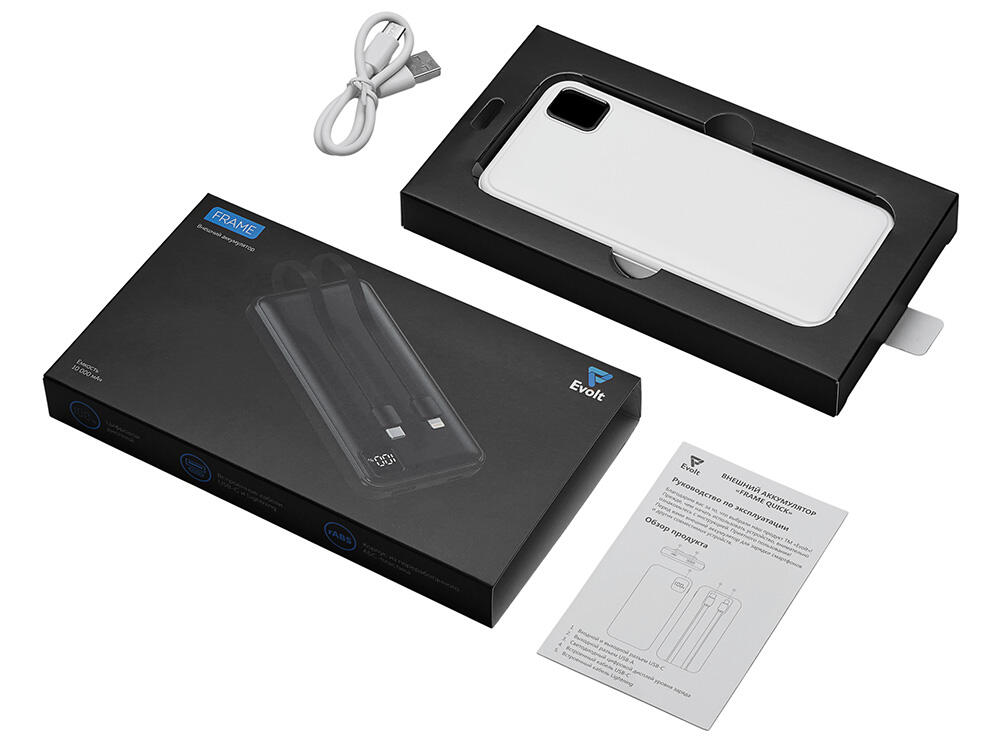 Внешний аккумулятор со встроенными кабелями «Фрэйм» 10000мач