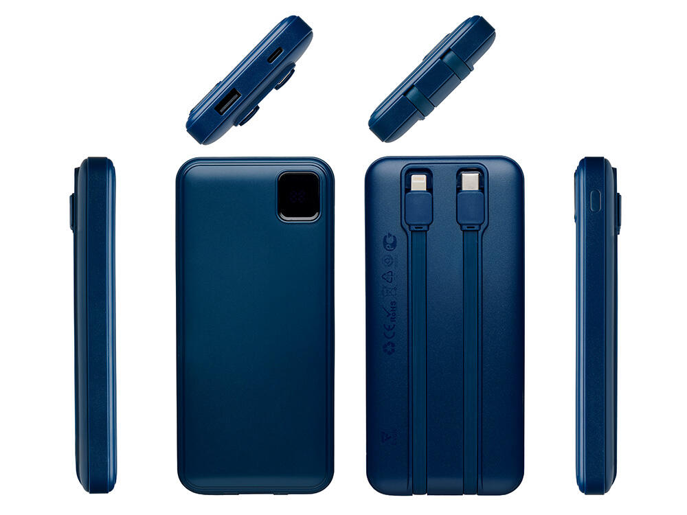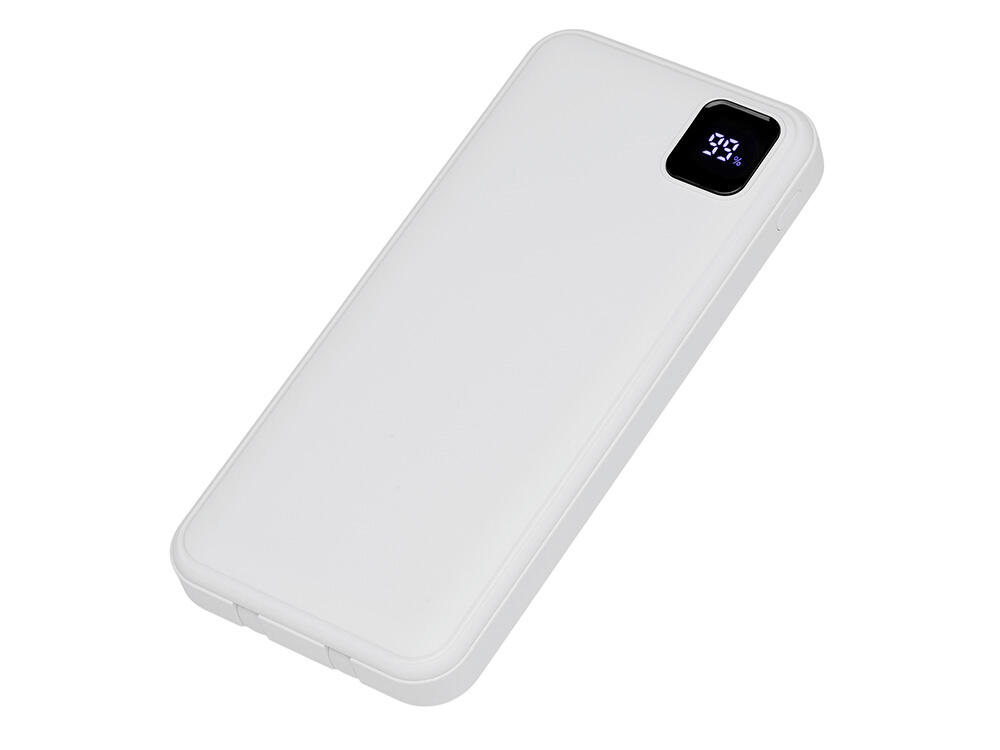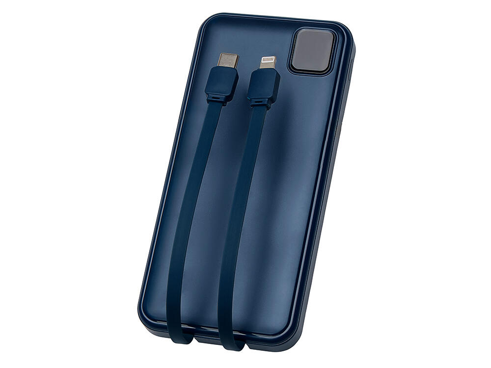 Удобный внешний аккумулятор с встроенными кабелями USB-C и Lightning — ваш надежный партнер в путешествиях, на встречах и в повседневных задачах. Цифровой дисплей в реальном времени показывает точный остаток заряда, а компактные габариты делают его таким же удобным, как смартфон. Прочный корпус из переработанного АБС-пластика и емкость 10000 мАч обеспечивают долгую работу даже при интенсивном использовании. Идеальный выбор для тех, кто ценит комфорт и функциональность в одном устройстве. Продуманная упаковка: для открытия просто потяните за язычок, и появится гаджет с нанесением.