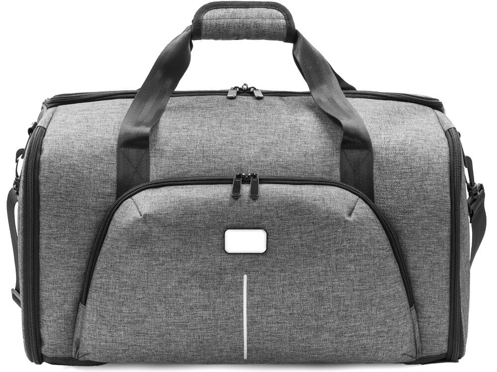 Вместительная и удобная универсальная сумка из плотного водостойкого материала, подходящая как для занятий спортом, так и для путешествий, создана для умного хранения вещей благодаря своей складной конструкции. Встроенный чехол для одежды можно использовать как портплед. Ремень для крепления к чемодану удобен в поездках. Отстегивающаяся регулируемая лямка на плечо, дополнительный наружный карман на молнии и 2 внутренних кармана по бокам добавляют дополнительное удобство при использовании. Светоотражающий элемент на кармане впереди служит для большей защиты в темное время суток. В комплекте съемный металлический шильд под нанесение вашего логотипа.