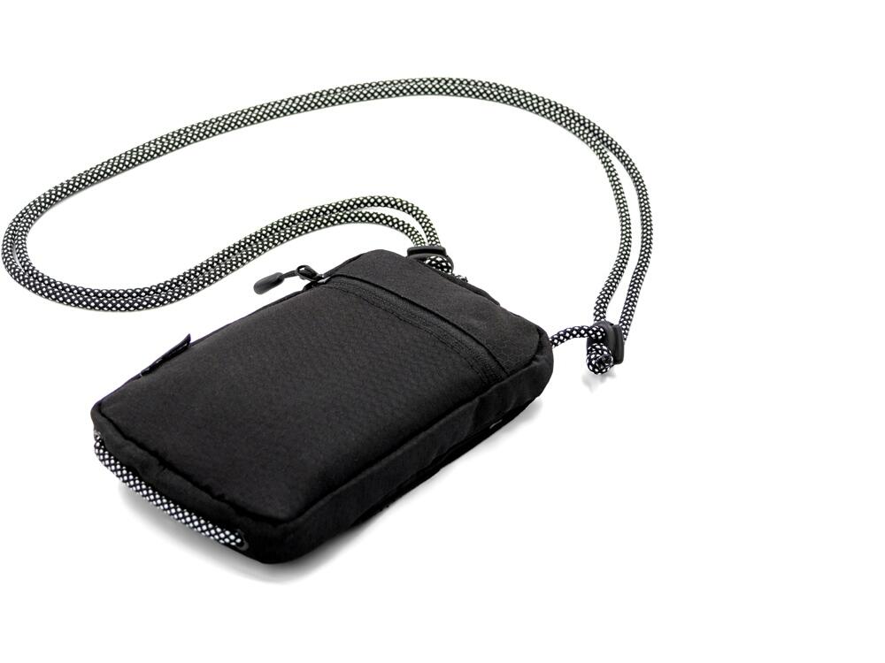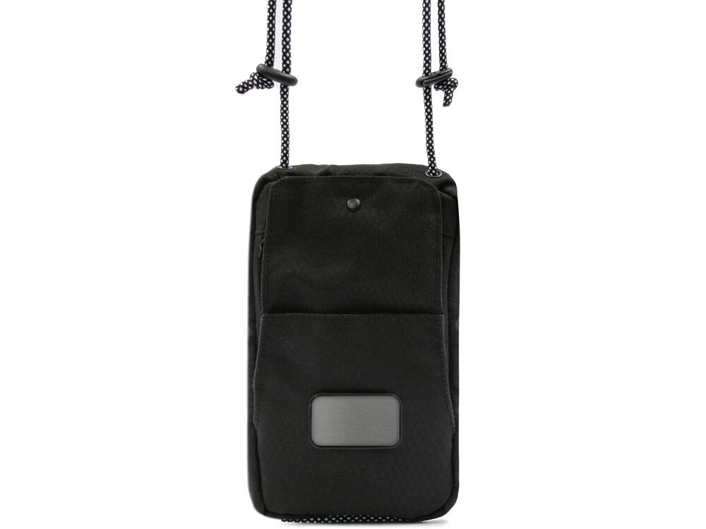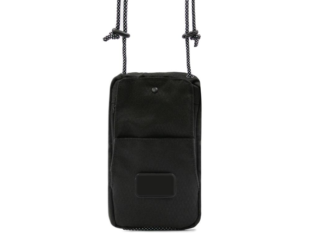 Компактная и легкая сумка для телефона и мелочей создана из прочного водоотталкивающего переработанного полиэстера, стойкого к загрязнению. Этот аксессуар станет незаменимым корпоративным подарком. В сумку войдет все, что все привыкли хранить в карманах. Удобная фиксация кармана быстрого доступа на магните позволяет легко открывать сумку. Основное отделение для телефона, бумажника, наружный карман и задний карман на молнии для ключей и карточек позволяют рационально организовать пространство. Шнурок регулируется по длине (max 95 см), поэтому сумку можно носить на плече, в руке или на шее. В комплекте съемный металлический шильд под нанесение вашего логотипа.