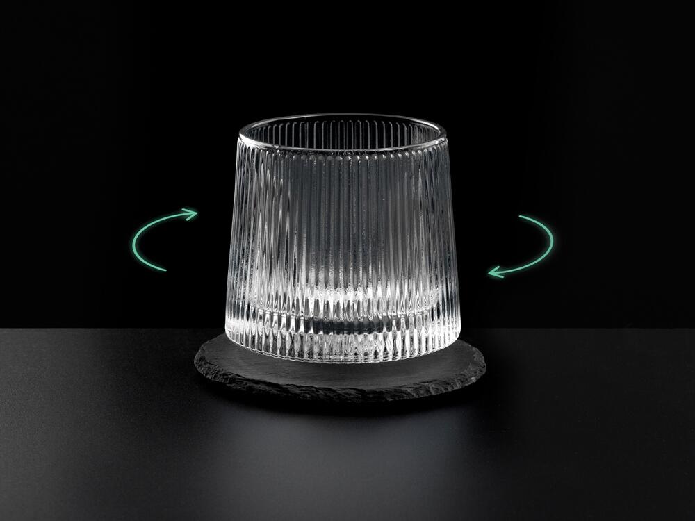 Погрузитесь в атмосферу элегантности и современного дизайна со стаканом "Ventura", выполненным из качественного содового стекла. Его уникальная особенность — специально разработанное дно, позволяющее стакану вращаться вокруг своей оси, создавая эффект плавного движения напитка.