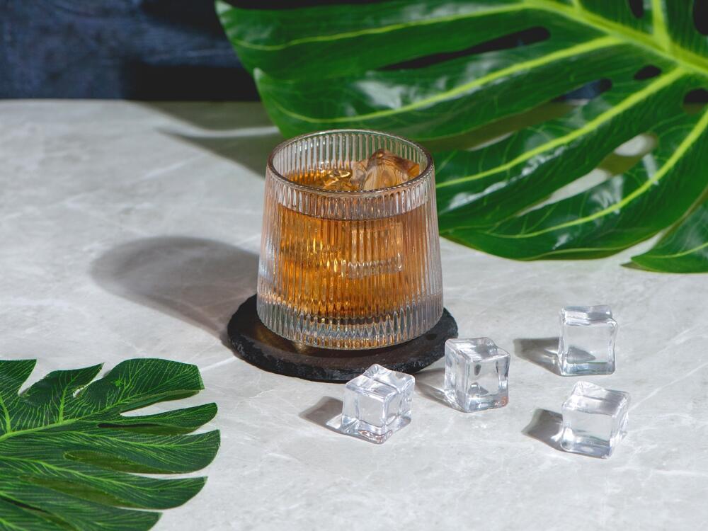 Дизайн: трендовые внешние грани и эффектное вращающееся дно подчеркивают цвет напитка.