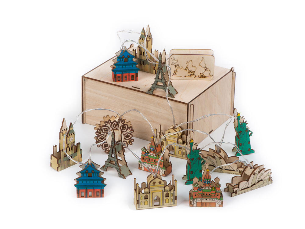 Ёлочная гирлянда с лампами в подарочной коробке «Достопримечательности мира»