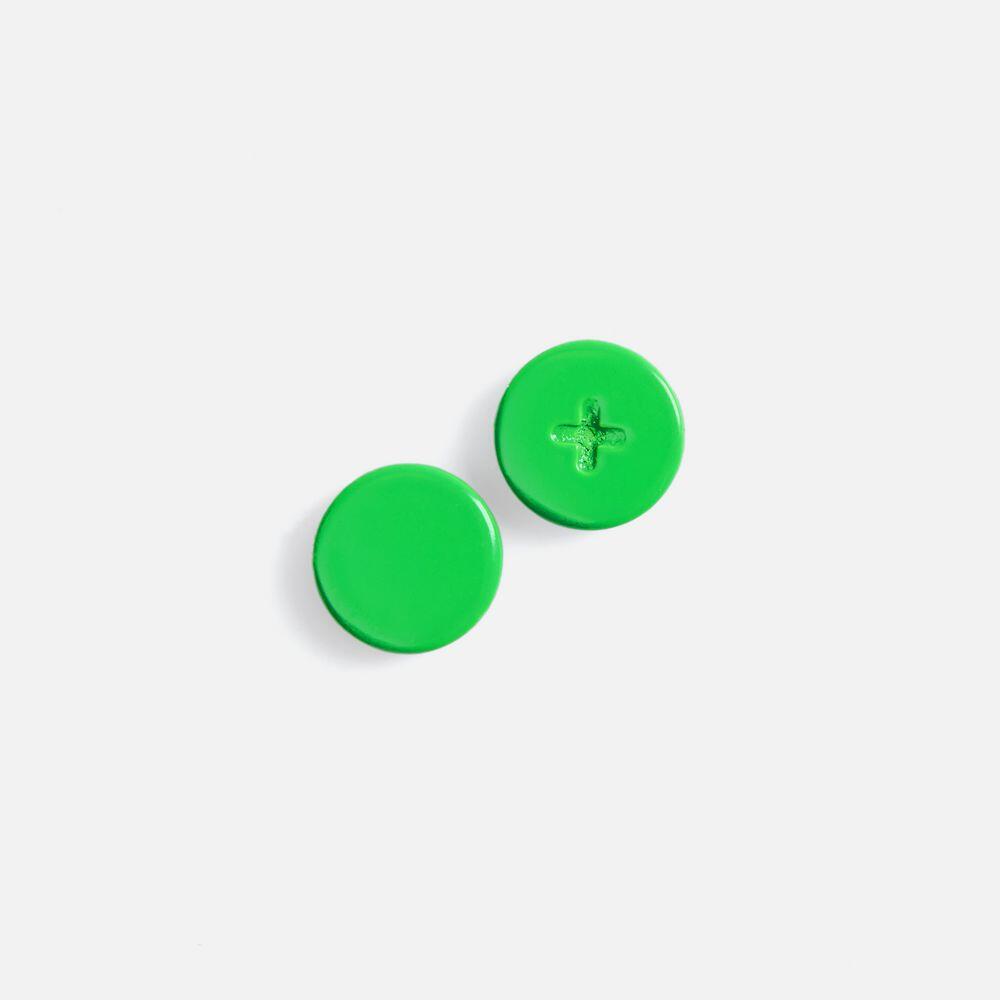 Цветные заклепки-винты используются для декоративного соединения материалов как альтернатива пришиву или просто элемент дизайна. Это одна из возможностей ненавязчиво, но ярко дополнить изделие или сделать на нем нужный акцент. Заклепка-винт продается по 1 штуке и состоит из 2 частей одного цвета, которые вручную закрепляются на изделии. Втулку заклепки вставляют в отверстие с одной стороны, а с другой накручивают на нее шайбу. Легко снимается с изделия и не требует специального оборудования для закрепления. 2 части заклепки поставляются в индивидуальной упаковке.