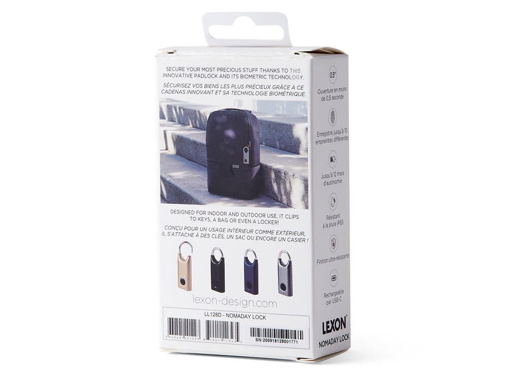 Nomaday Lock — это биометрический навесной замок с функцией распознавания отпечатков пальцев, разработанный для защиты ваших самых ценных вещей. Благодаря технологии распознавания отпечатков пальцев он может хранить до 10 различных отпечатков пальцев и разблокируется менее чем за 0,5 секунды. Замок Nomaday Lock изготовлен из цинкового сплава и оснащен сверхпрочной дужкой из нержавеющей стали, что обеспечивает оптимальную безопасность. Благодаря степени защиты от дождя IP65 его можно использовать как в помещении, так и на улице, что делает его идеальным для защиты ваших ключей, чемодана или шкафчика. Замок заряжается всего за 1,5 часа с помощью входящего в комплект кабеля USB-C и может разблокироваться до 3000 раз, а также может работать в режиме ожидания до 12 месяцев.