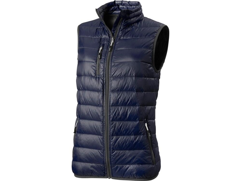 Женская пуховая жилетка Fairview. Стандартный покрой. Ткань не пропускает пух. Карманы для рук и нагрудный на молнии. Внутренний противоветровой клапан и защита подбородка. Эластичная обшивка внизу и на проймах. Ткань дышащая, ветронепроницаемая и влагоотталкивающая. Отражающий лого сзади. Ремешки на собачку (второй комплект в цвете антрацит). Жилет - версия победителя премии Reddot, куртки Scotia. Ткань из 100% нейлона с матовым и блестящим водоотталкивающим покрытием, 20D. 80% пух и 20% перо.