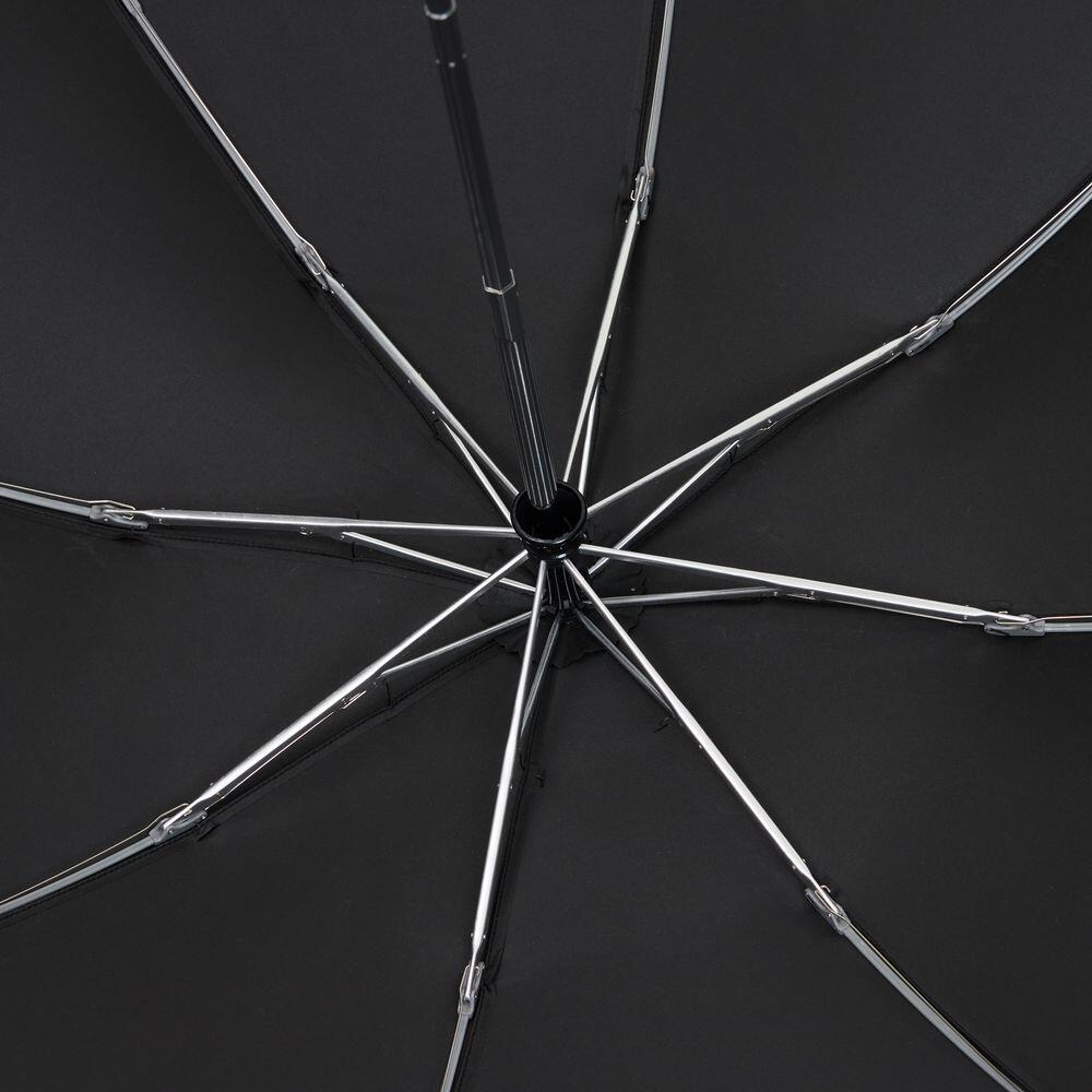 Складываясь после дождя, он прячет мокрую поверхность внутри, а сухая остается снаружи: в закрытом положении зонт не побеспокоит окружающих и не намочит одежду. Благодаря застежке на ремешке зонт удобно подвесить, например, на рюкзак.