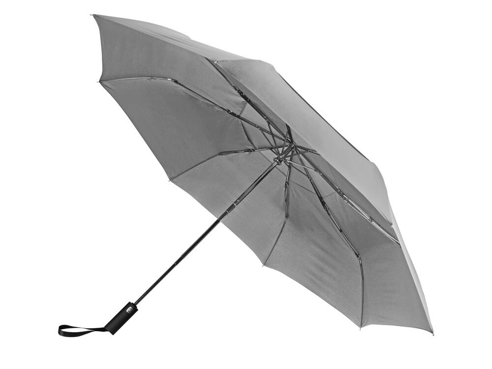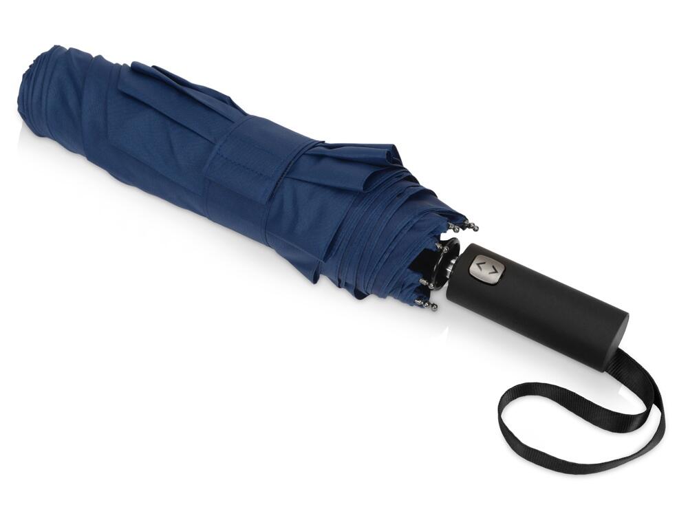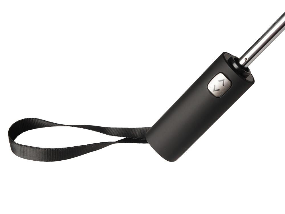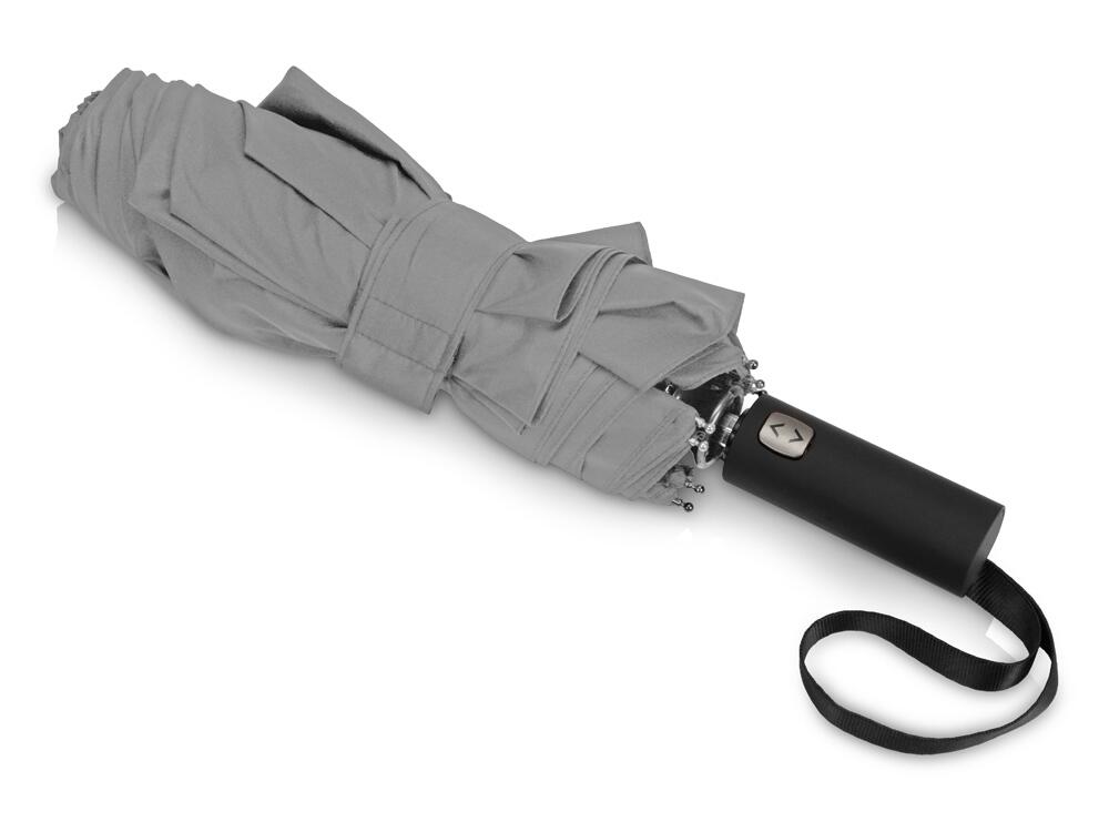 Купол этого складного зонта-автомата состоит из двух полотен и имеет большой диаметр 127 см. Прочный каркас и спицы из стекловолокна устоят при порывах ветра. Благодаря этому зонт служит надежным укрытием в самый сильный дождь. Закрывается в 3 сложения. Ручка обработана мягким покрытием soft-touch. Широкий хлястик для удобства персонализации.
