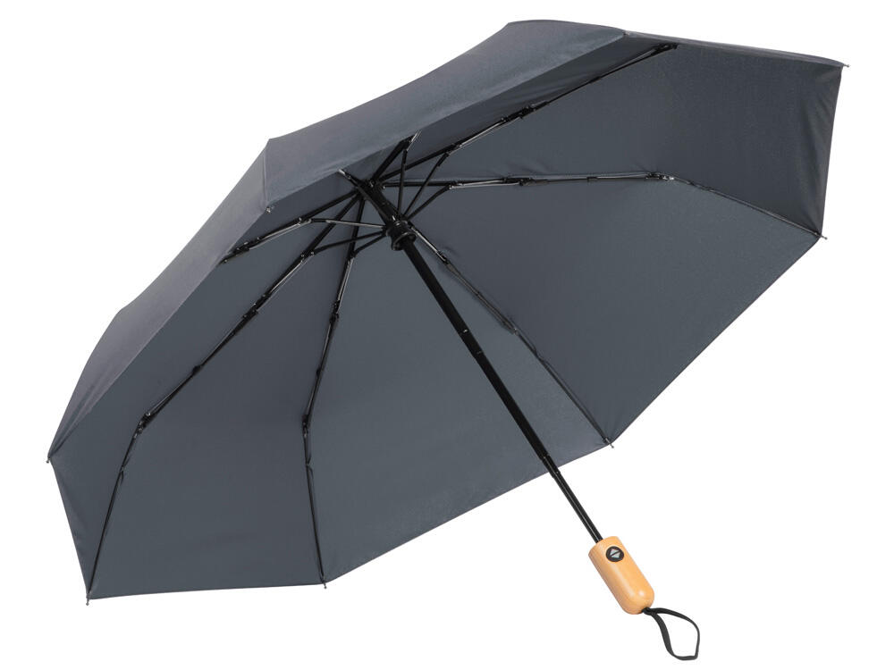 Зонт-автомат с куполом из переработанного пластика - незаменим на случай дождя и сможет выдержать порывы ветра, так как снабжен функцией windproof. На удобной ручке из натурального бамбука есть кнопка открытия и закрытия зонта. Шнурок на ручке предусмотрен для дополнительного удобства - за него можно вешать зонт при хранении и сушке.