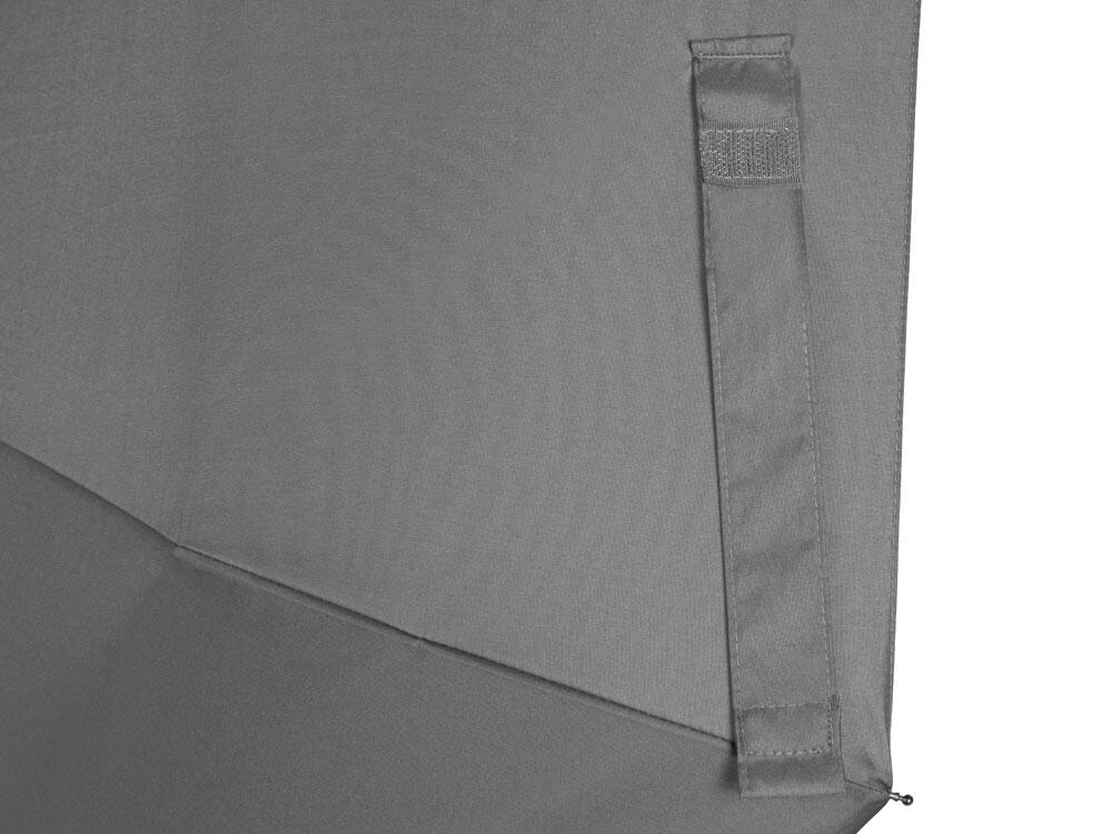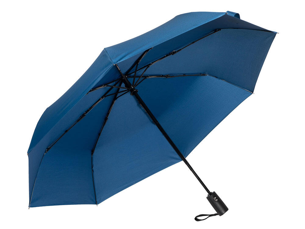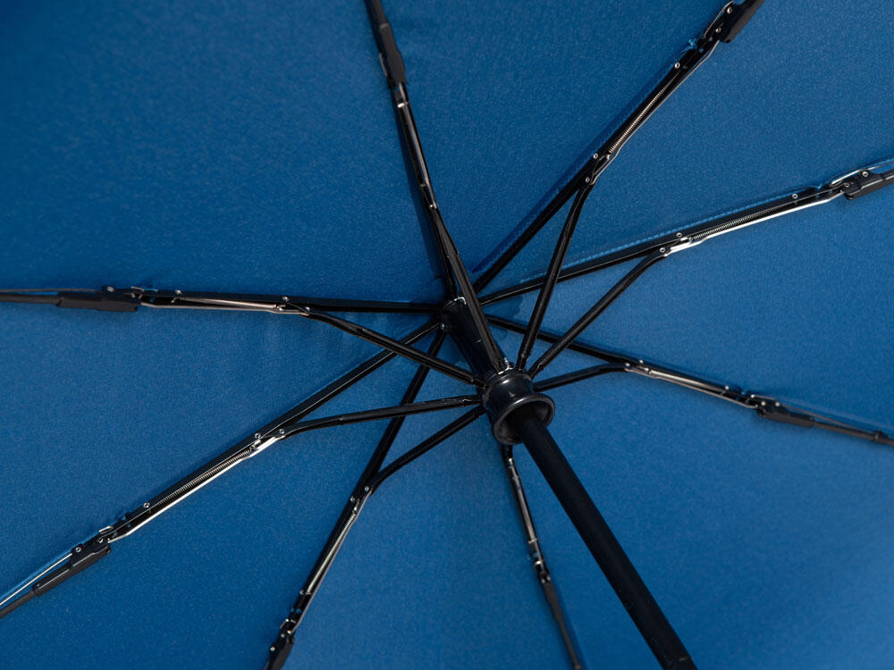 Купол зонта выполнен из переработанного пластика. Гибкие спицы из стекловолокна делают зонт стойким к порывам ветра. Удобная ручка софт тач. Фиксирующая купол застежка на липучке шириной 3 см - дополнительная опция для нанесения вашего логотипа.