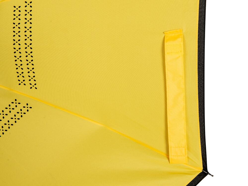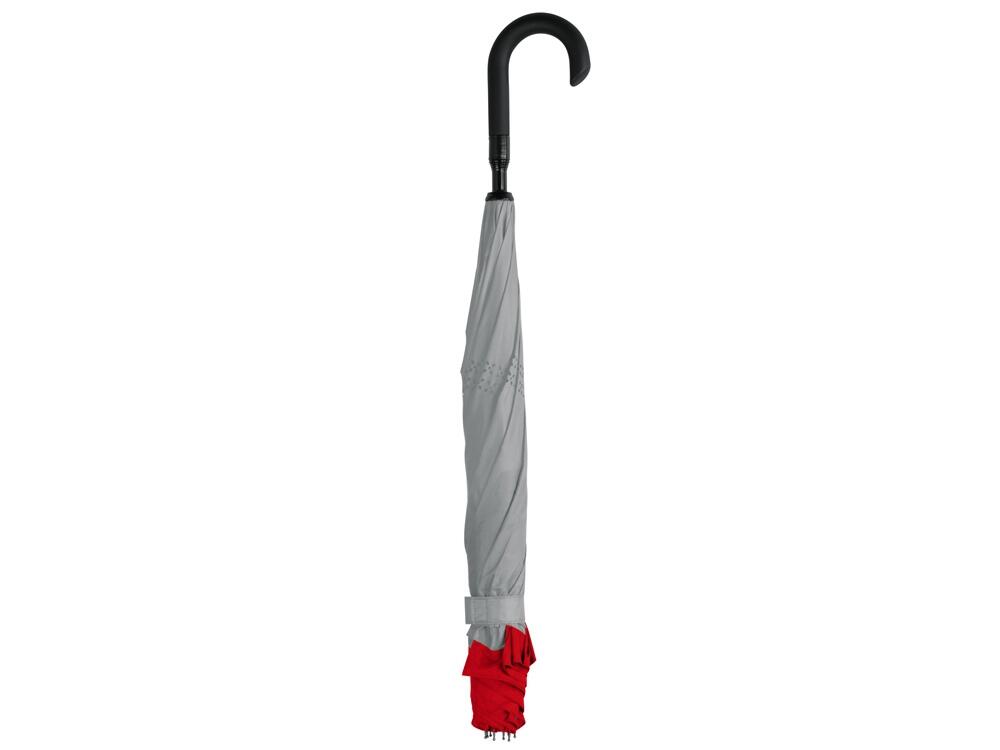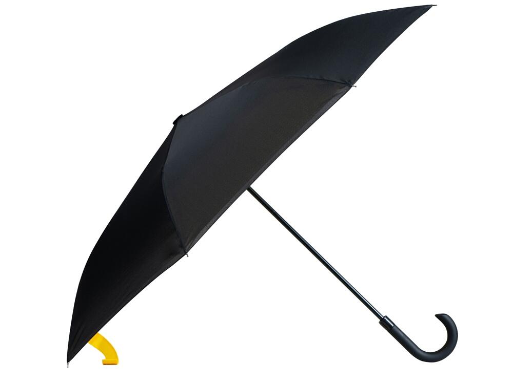 Зонт с обратным сложением складывается "внутрь". Очень удобен в использовании, например, во время посадки в машину при складывании вода остается внутри купола. Для просушки зонт можно поставить вертикально на пол в сложенном виде, что позволяет воде стекать без раскрытия зонта. Двойной купол из 190Т эпонжа. Ручка с мягким покрытием soft-touch для большего комфорта.